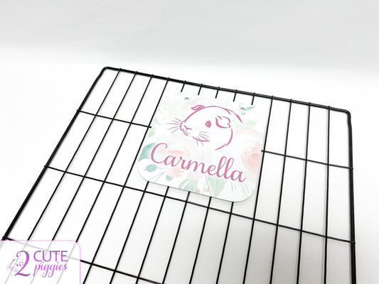 Guinea Pig Name Tag - GP Face Outline with Roses - 5.5"x5.5"
