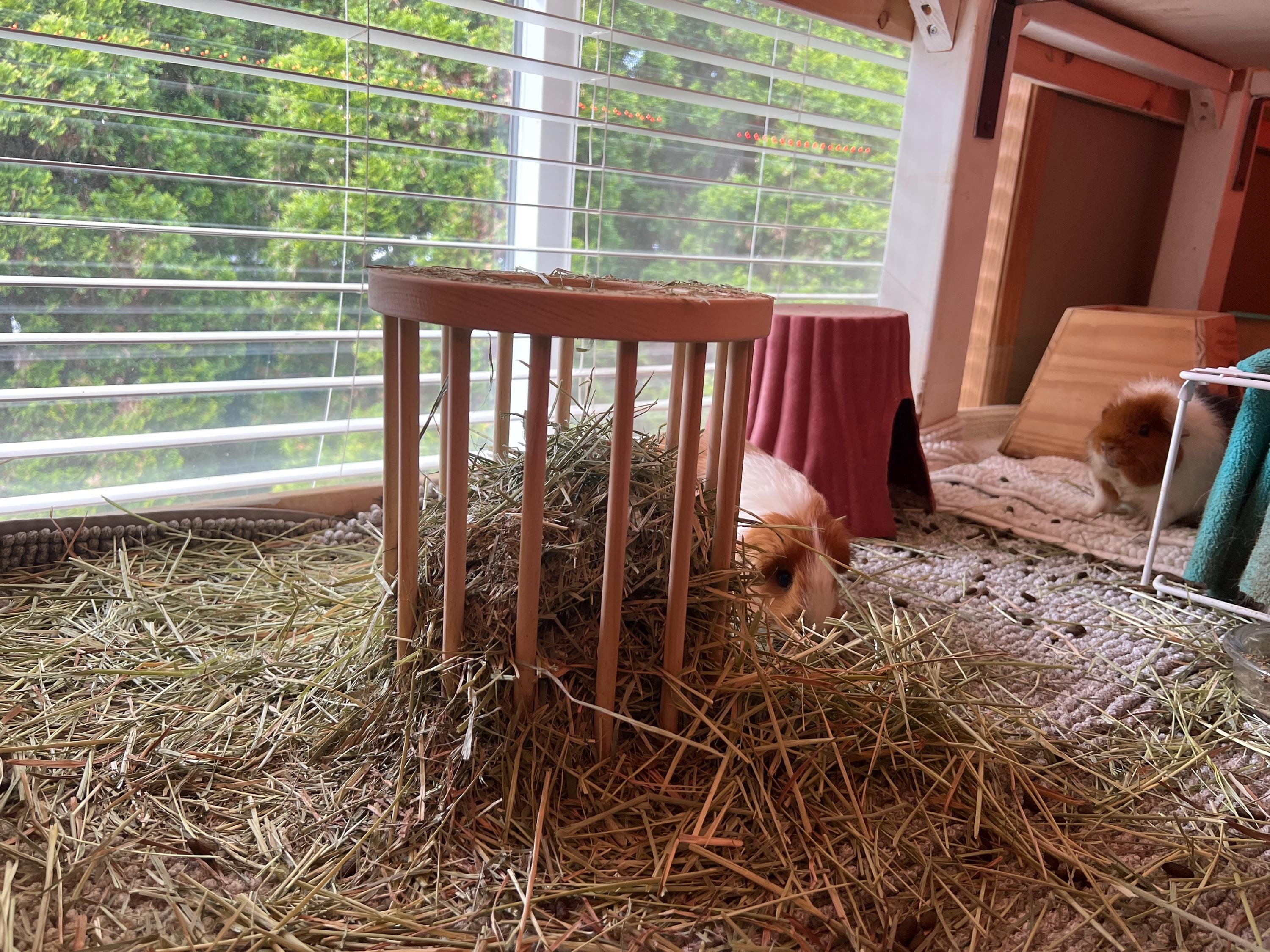 This is my second time purchasing this because my first one was accidentally taken by a friend who misplaced it. I held off for about a month before buying another, but I quickly realized I couldn’t go without it. As someone with multiple guinea pigs, this has been incredibly convenient—especially since each of them has their own personality. If you want to make hay feeding easier and reduce the hassle, this is the perfect solution! :)