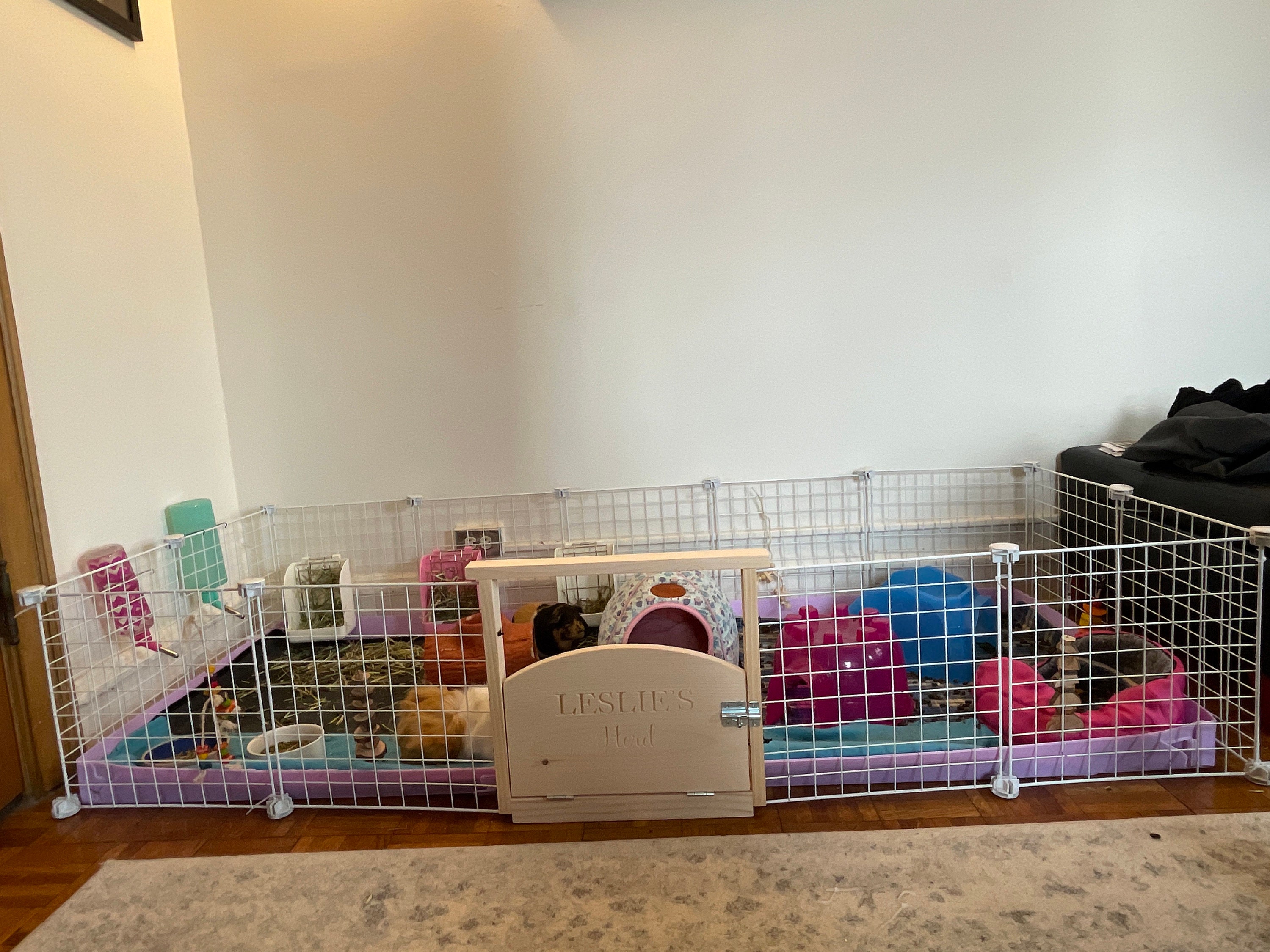 If you have a coroplast bottom to your cage that comes up around the edge, you will need to notch an area for the cage door in order for your Piggies to enter and exit.
