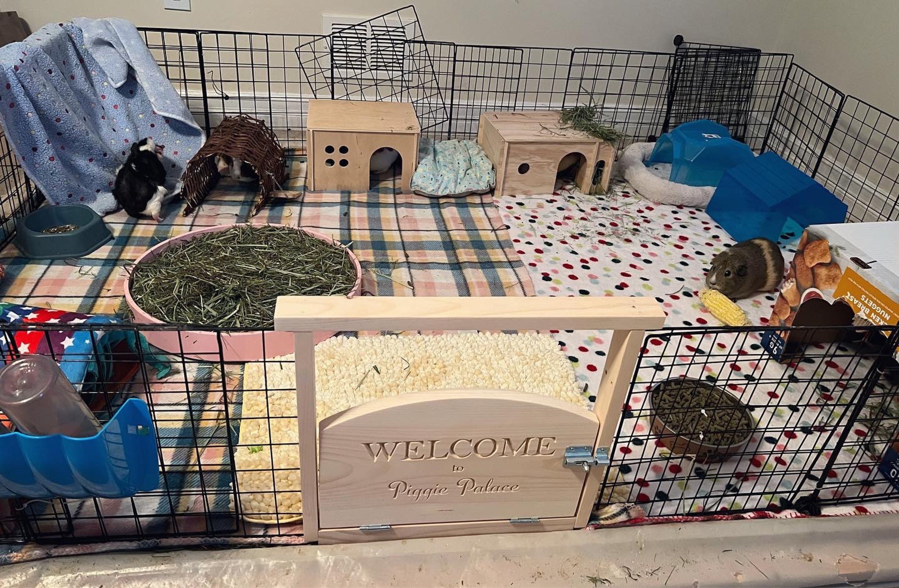 Although the transport company lost the item for a few days, once it finally did arrive, the gate was very cute and well made. It was packaged well to keep it safe in transit, was easy to install, and gets lots of notice from visitors. My piggies also like having a door so they donβt have to be picked up to exit their enclosure. The seller maintains great communication as well. I would definitely order this item or other items from them again.