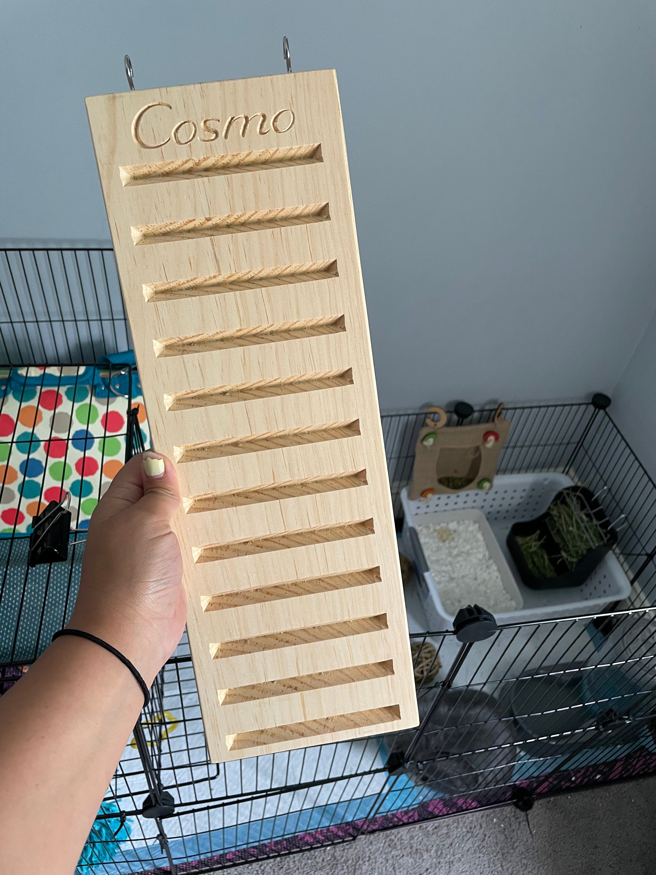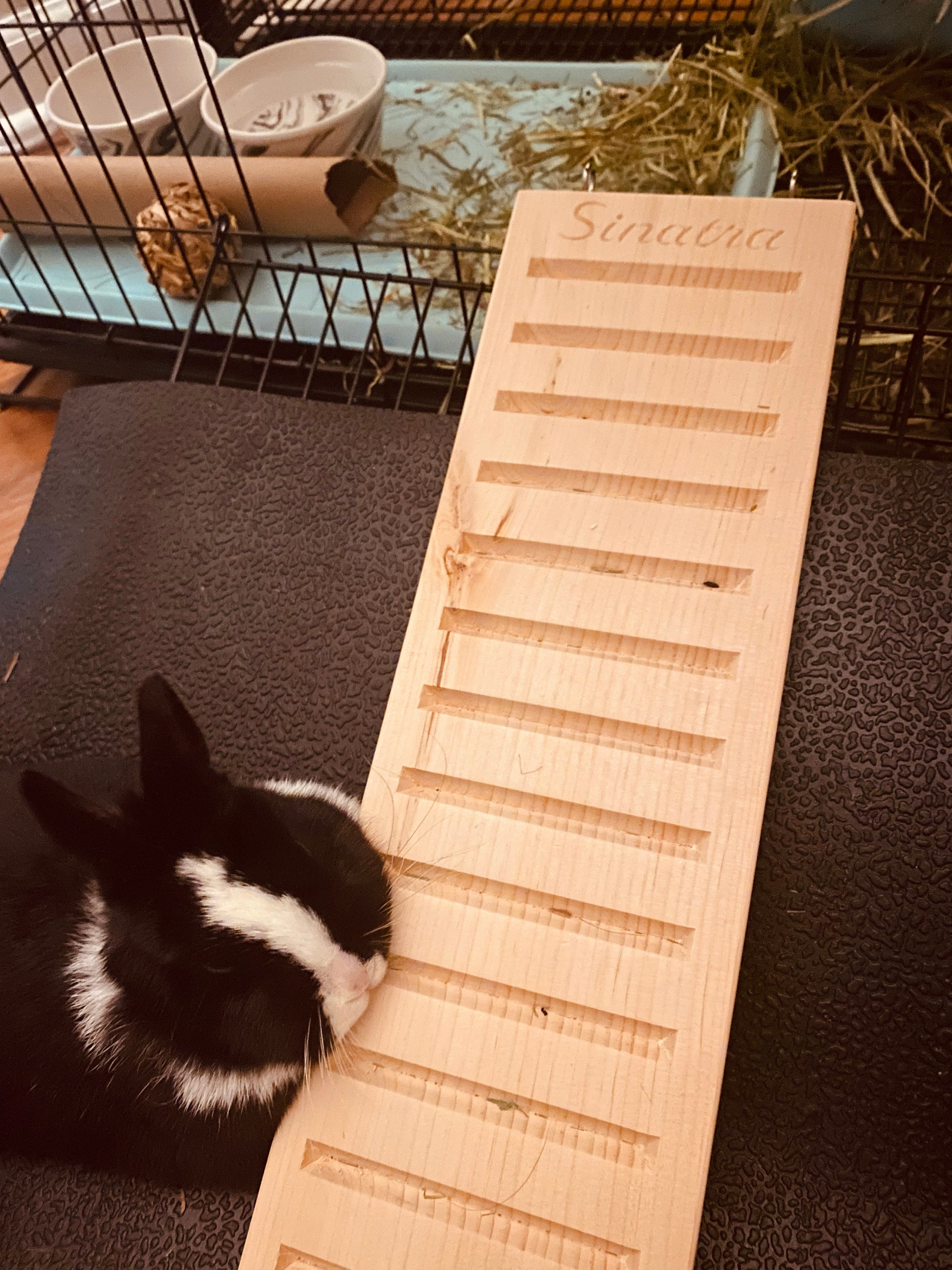 Adorable little ramp, perfect for my mini lop bunny. Good quality and the personalization is perfect.