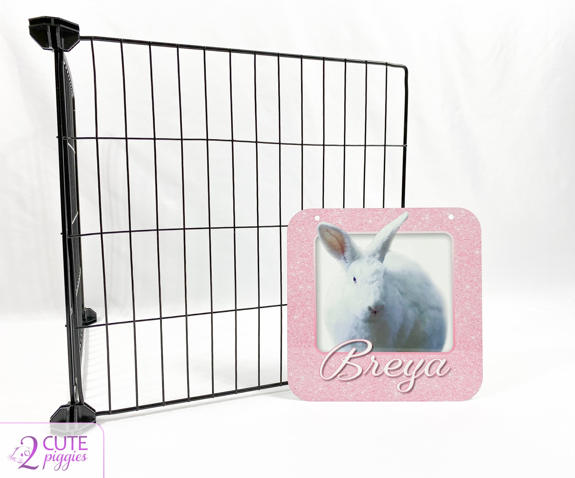 Bunny Rabbit Name Tag with Picture of Your Rabbit - 3-D Effect Glitter - Cage Tag 8"x8"