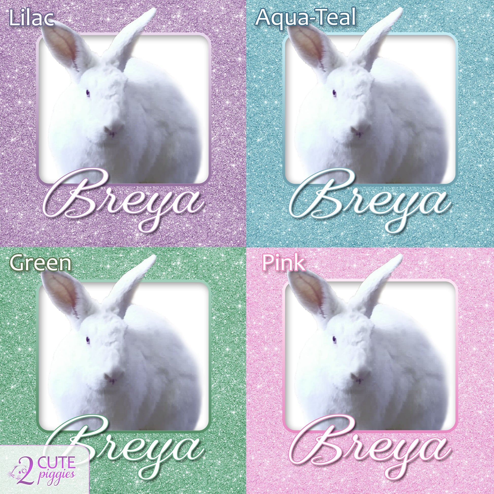 This Rabbit Cage Name Tag is an adorable finishing touch to your Rabbit's habitat. Produced using aluminum, this square personalized name cage tag features a Glitter look background with a 3-D effect of your Bunny Rabbit.