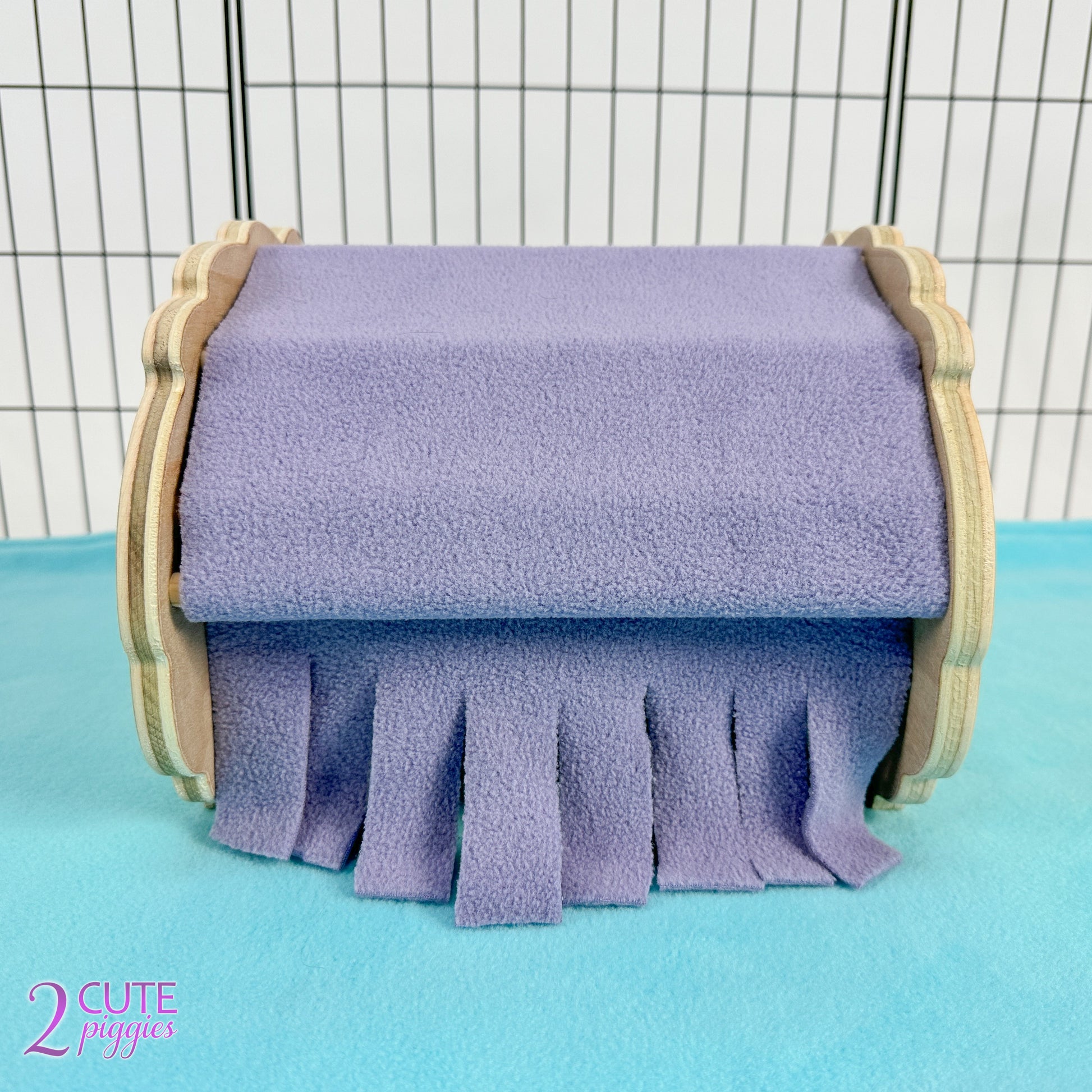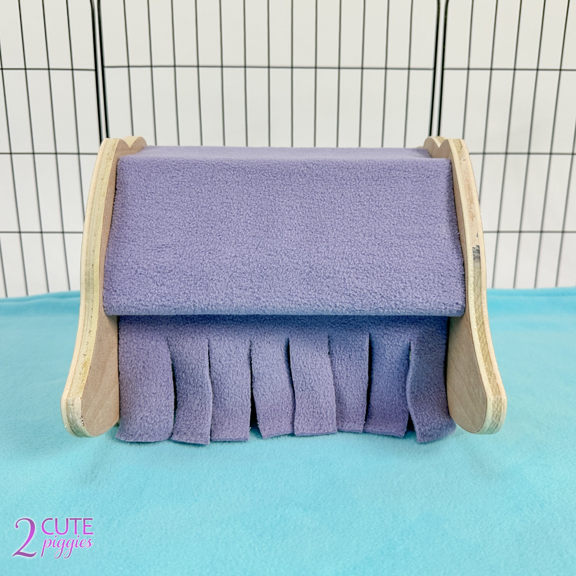 Our Hedgehog inspired Wood Hedgehog Hidey is the perfect addition to your Hedgie's habitat. Produced using chew safe hardwood plywood, this hedgehog tunnel is sure to become one of your hedgehog's favorites. Featuring a fleece lined top, the entry and exit have fringed detailing to allow easy access for your hedgehog. Fleece can be removed for easy washing and changing out to other available colors.