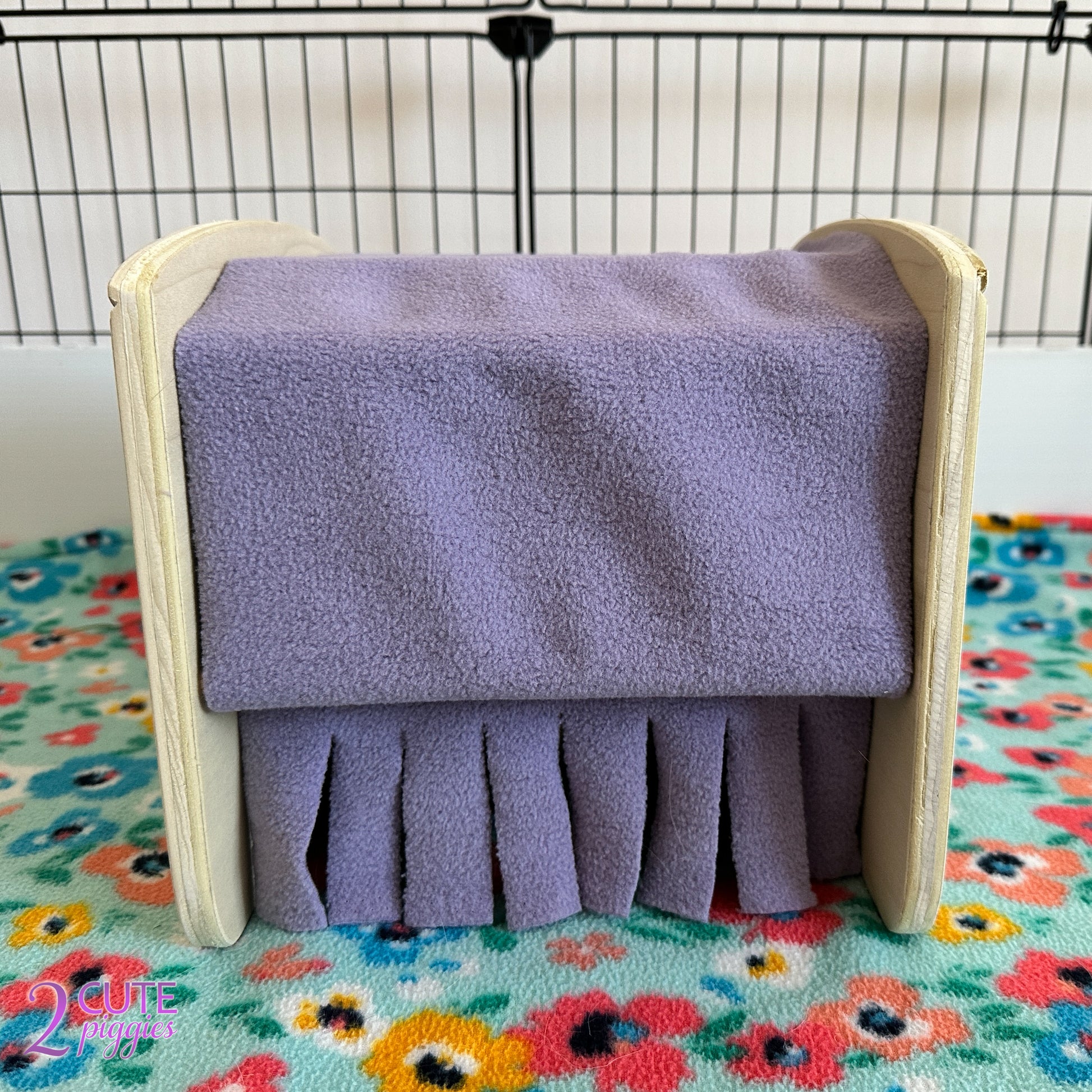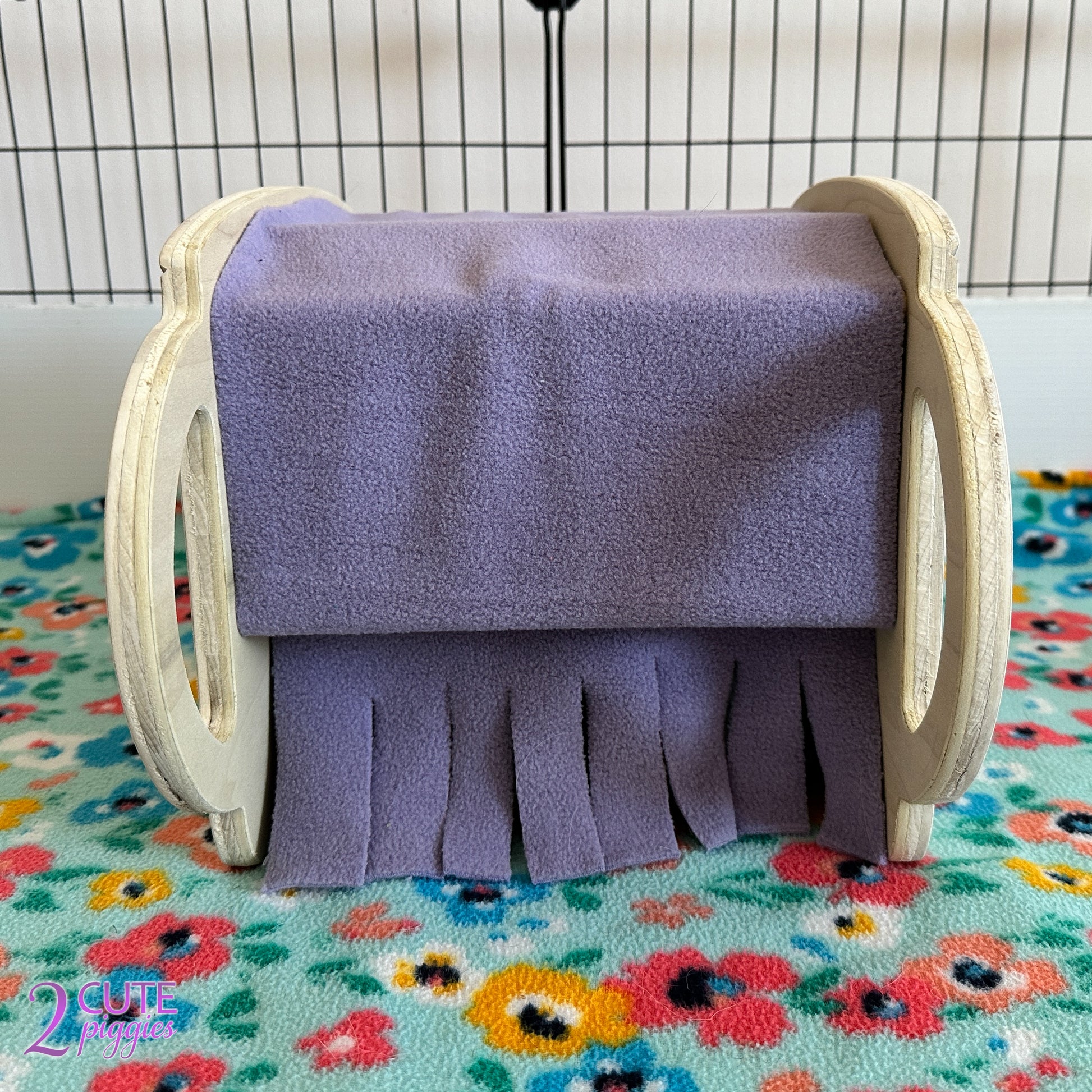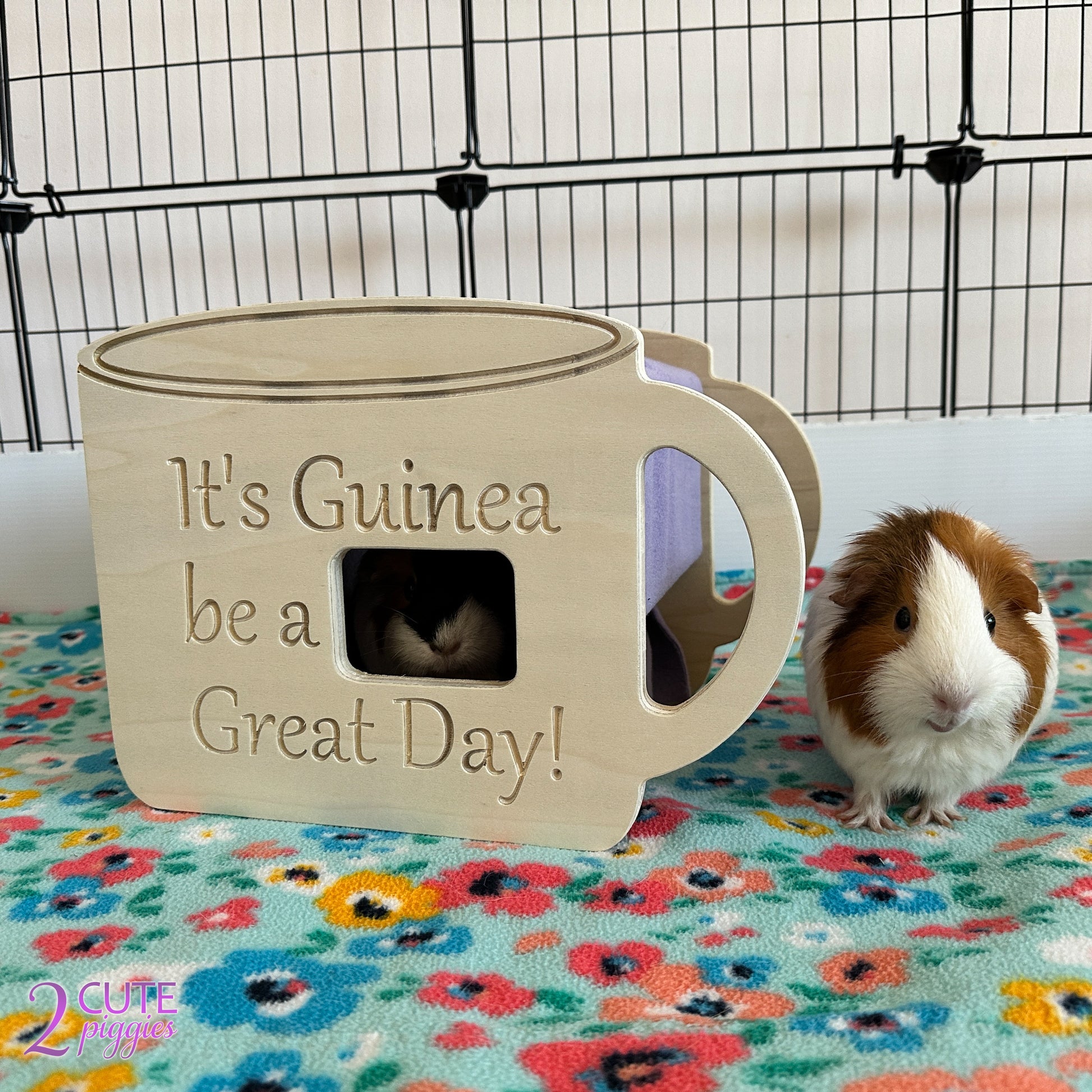 Our Coffee Cup inspired Wood Guinea Pig Hidey is a fun addition to your guinea pig decor! Guinea Pigs and Coffee! Could there be anything better? Produced using chew safe hardwood plywood, this guinea pig tunnel is sure to become one of your piggies favorites. Cut outs of the windows allow you to see your piggies in the comfort of their own security. Featuring a fleece lined top, the entry and exit have fringed detailing to allow easy access for your guinea pigs. Fleece can be removed for easy washing and changing out to other available colors.