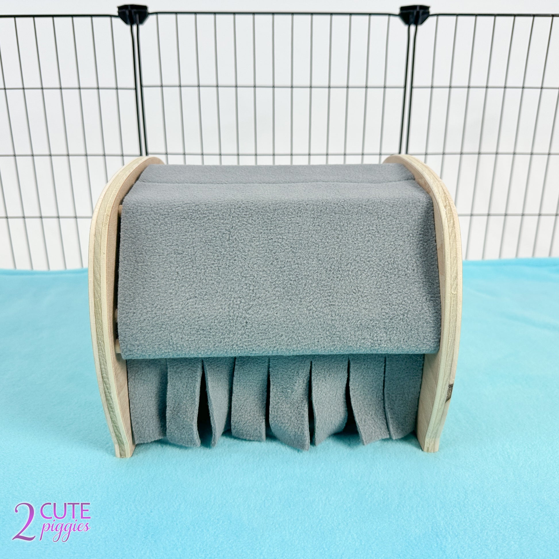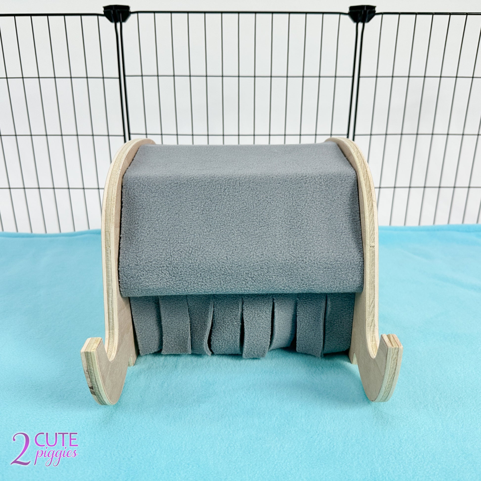 Our Elephant inspired Wood Guinea Pig Hidey is a fun addition to your guinea pig decor! Produced using chew safe hardwood plywood, this guinea pig tunnel is sure to become one of your piggies favorites. Featuring a fleece lined top, the entry and exit have fringed detailing to allow easy access for your guinea pigs. Fleece can be removed for easy washing and changing out to other available colors.